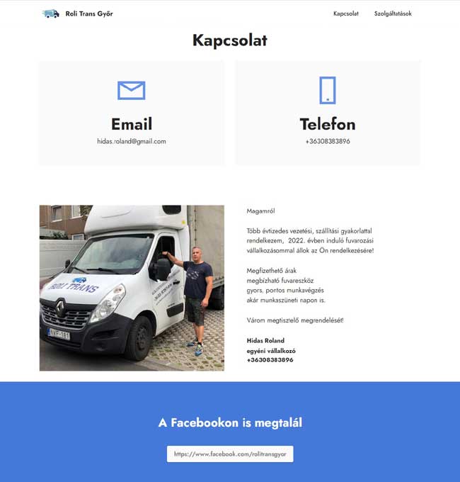 PHP, Bootstrap technikával készült statikus, egyoldalas céges weboldal.